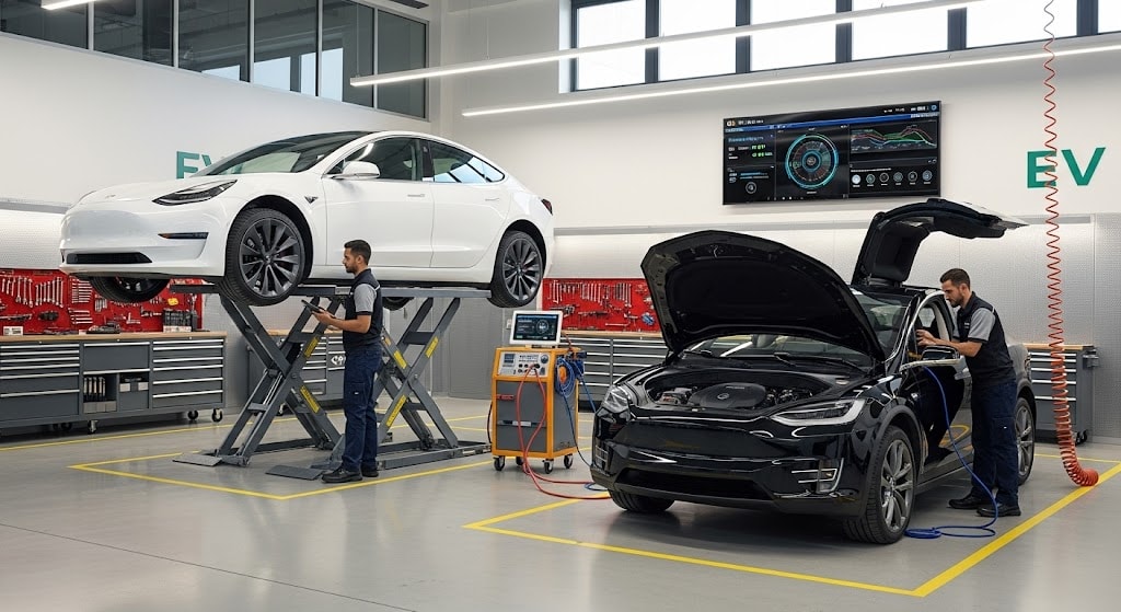 EVs like Teslas have fewer moving parts than traditional cars, but still require cooling system maintenance, firmware updates, suspension care, tire alignment, and more. Neglecting these can reduce your range and compromise safety.