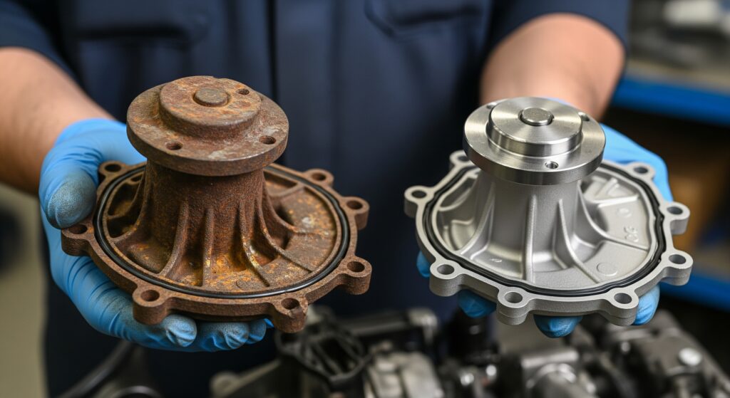 The thermostat regulates coolant flow. A faulty thermostat can cause overheating or temperature swings. Our technicians install OEM or equivalent thermostats to restore proper operation.