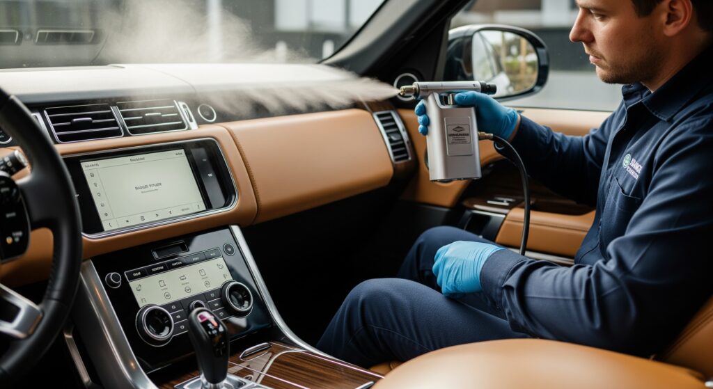 We perform a detailed cleaning of your Range Rover’s AC and heating system, removing built-up contaminants affecting airflow and quality. This includes accessing the evaporator, ducts, and vents for deep treatment.