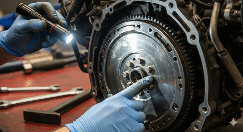 We inspect for hot spots, cracks, or scoring. If resurfacing is not possible, we install a new dual-mass flywheel.